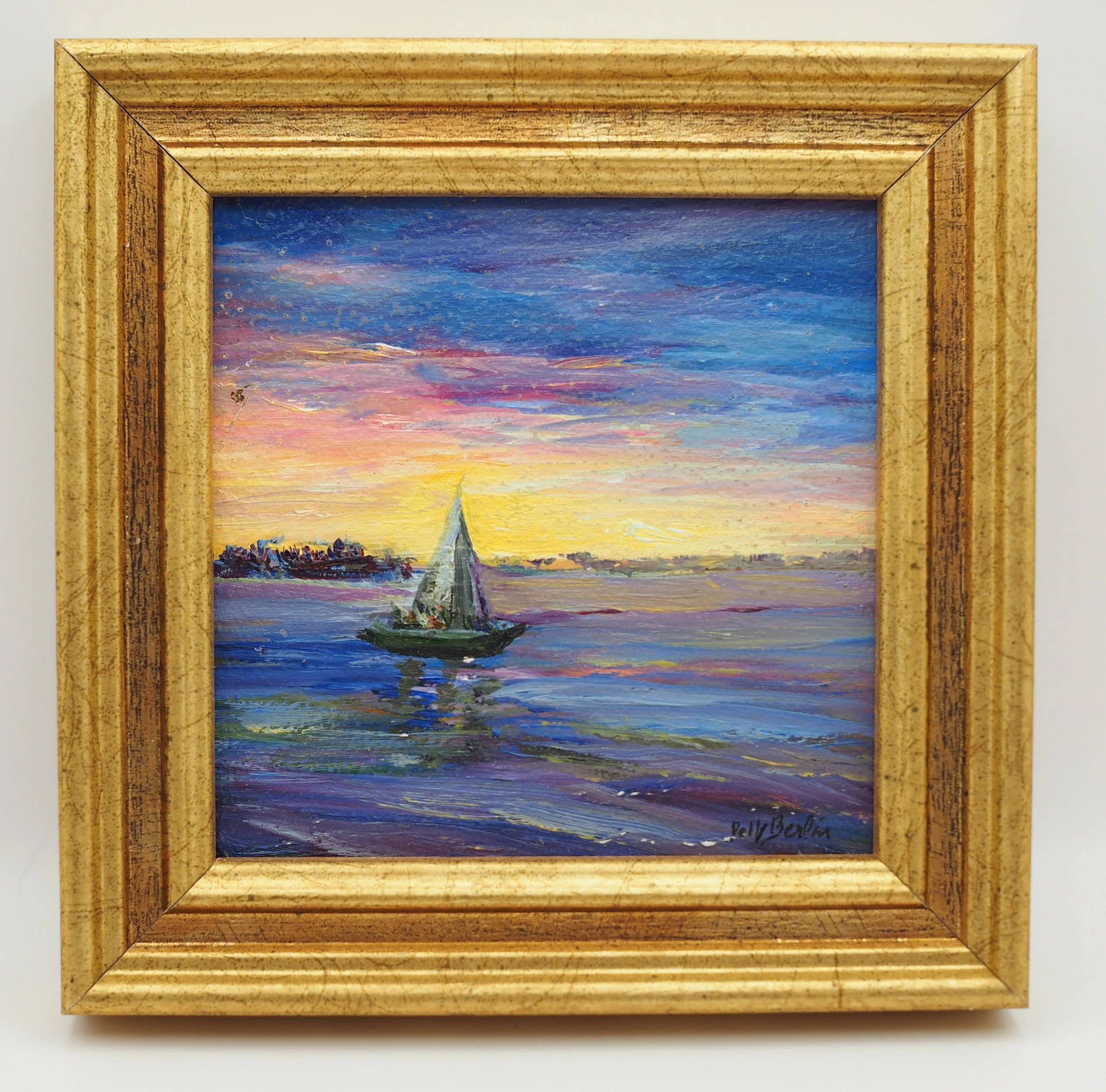 19-Polly Berlin At Sunset-2 1-2 x 2 1-2-oil-$225